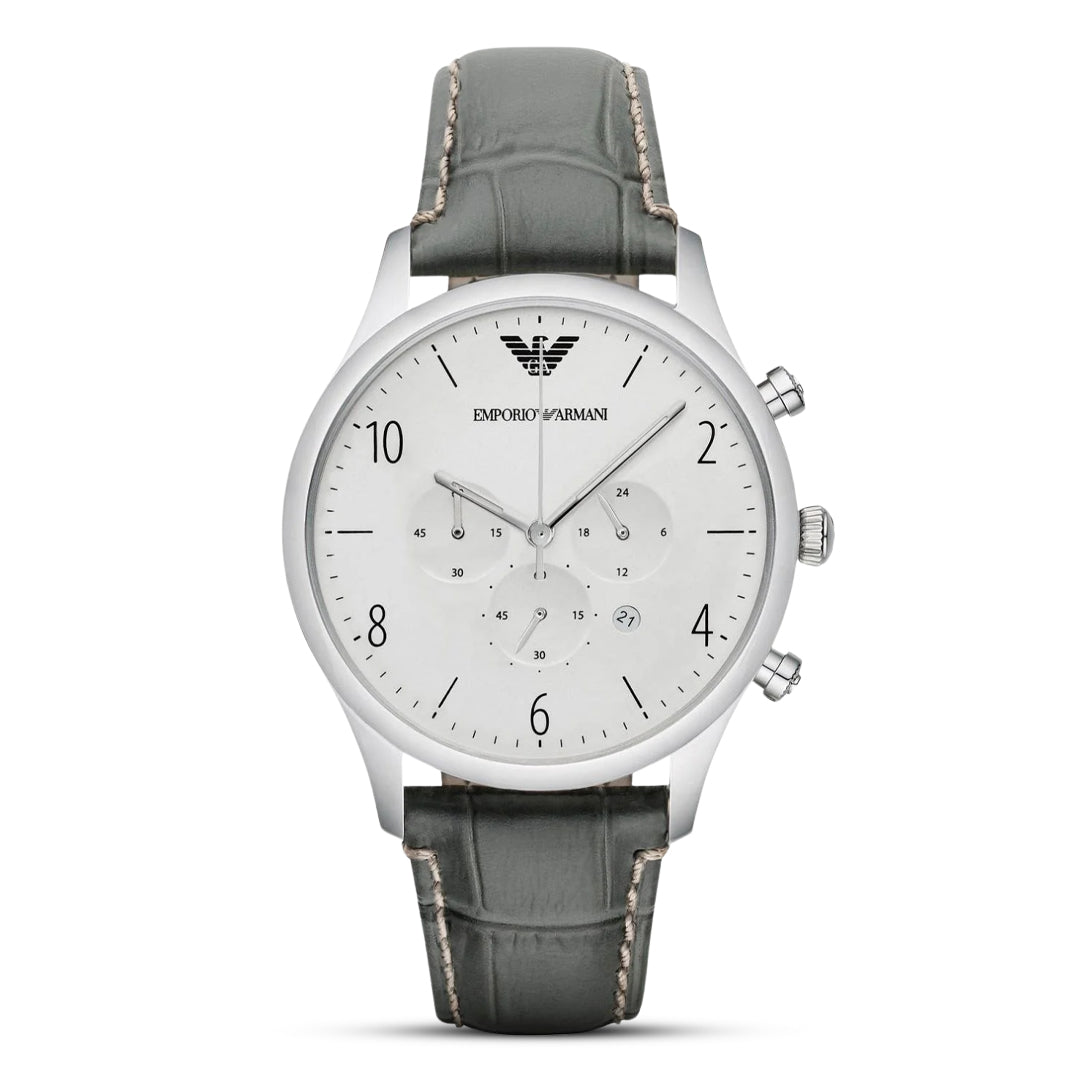 Emporio Armani Dress Chronograph Grey Leather Strap Watch | AR1861