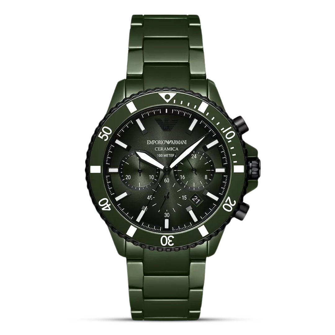 Emporio Armani Green Dial Black Strap Chronograph Watch AR11562