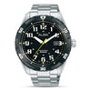 - Band Material: Stainless Steel, Band Color: Silver Tone, Bezel Material: Stainless Steel, Bezel Color: Black, Band Width: 22 mm.