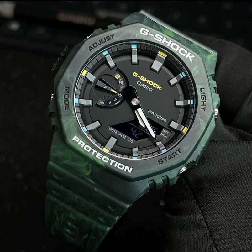 Introducing the Casio G-SHOCK ANALOG-DIGITAL GA-2100 SERIES watch. This timepiece offers a unique combination of analog and digital timekeeping technology, allowing you to view the time with lightning-fast precision. The watch is shock-resistant and water-resistant up to 200 meters for ultimate durability. The Casio G-SHOCK ANALOG-DIGITAL GA-2100 SERIES is perfect for outdoor enthusiasts.