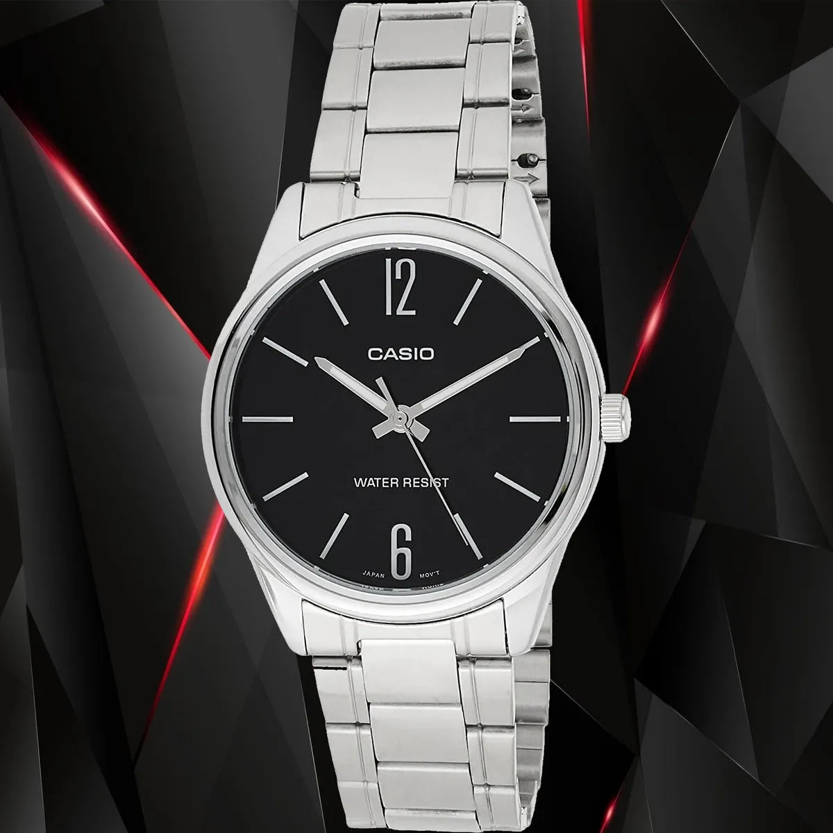 This classic Casio Enticer watch for men is an ideal, time-tested accessory for everyday wear. The MTP-V005D-1BUDF is equipped with a timeless Black dial, slimmer size, and durable stainless steel case for a timeless look. The watch is designed to stand the test of time so you can trust it always.