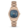 - Case Size: 32 mm, Dial Color: Navy Blue, Case material: Stainless steel, Case Thickness: 9.8 mm, Case Color: Pink Rose Gold.
