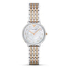 - Band Material: Stainless Steel, Bezel material: Stainless Steel, Bezel Color: Silver Tone, Band Width: 14 mm, Band Color: Two Tone Silver and Rose Gold.