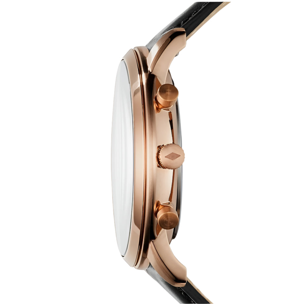 Movement: Quartz Chronograph, Strap Material: Leather, Strap Colour: Black