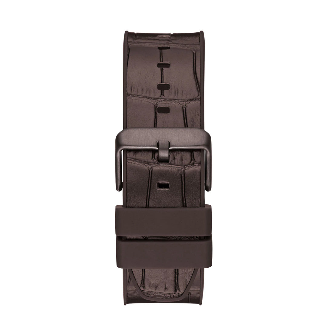- Band Material: Genuine Leather/Silicone, Bezel material: Stainless Steel, Bezel Color: Brown, Band Width: 24 mm, Band Color: Brown, Band: Details: Brown Crocodile-Embossed Genuine Leather Strap.