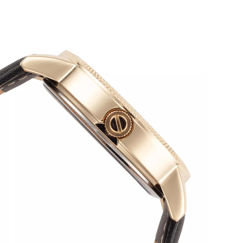 - Band Material: Leather, Band Color: Black, Bezel Material: Stainless Steel, Bezel Color: Rose Gold Tone, Band Width: 22.0 mm.
