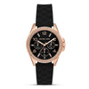 - Band Material: Silicone Rubber, Bezel material: Stainless Steel, Bezel Color: Rose Gold, Band Width: 18 mm, Band Color: Black.