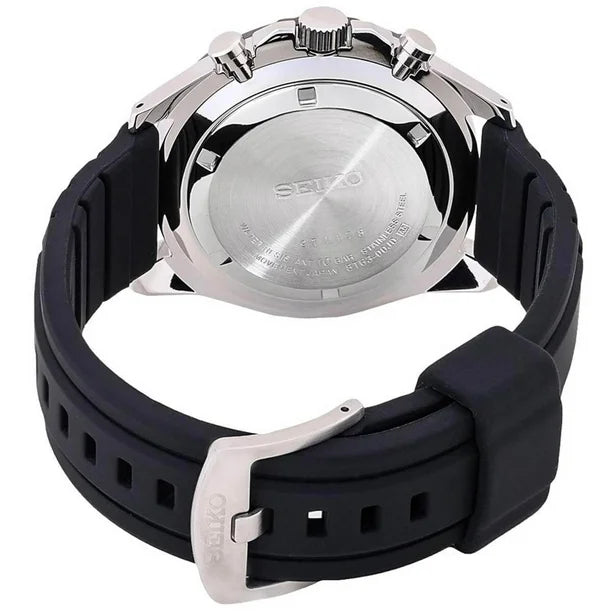 Seiko Essentials Chronograph Black Silicon Strap Watch SSB347P1
