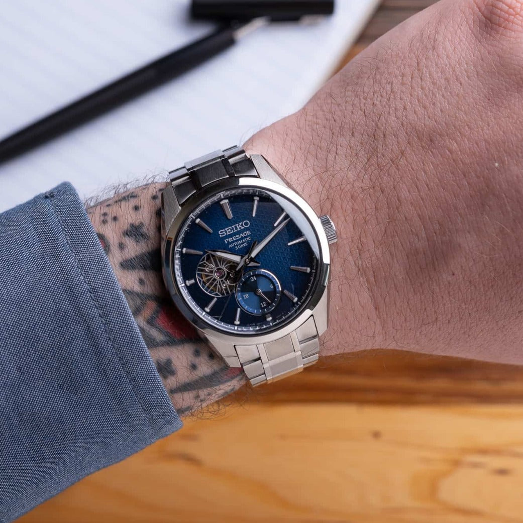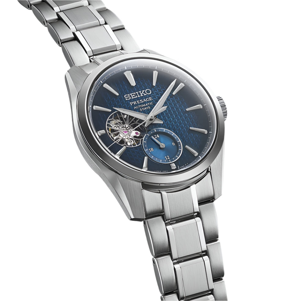 SEIKO Presage 'Ao' Sharp-Edged Open Heart Automatic Watch| SPB417J1