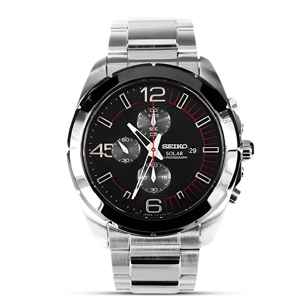 Seiko Solar Chronograph Black Dial Stainless Steel Men's Watch | SSC215P1
