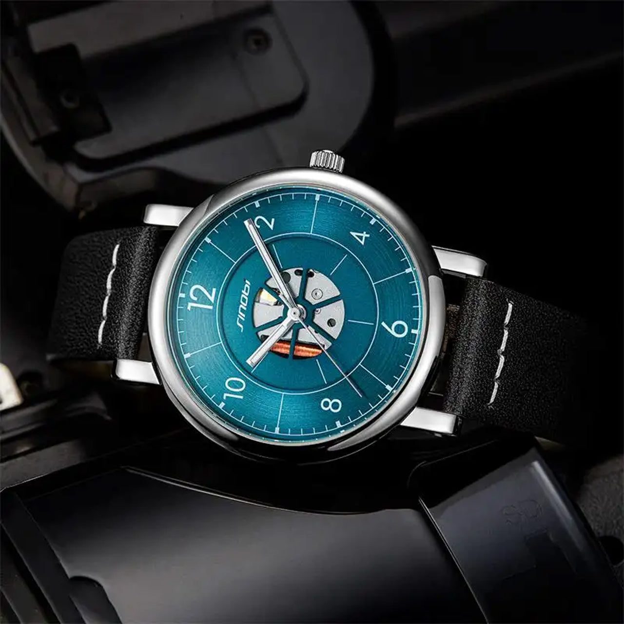 Sinobi 'FORSINING' Leather Strap Blue Dial Men's Watch | S9843G