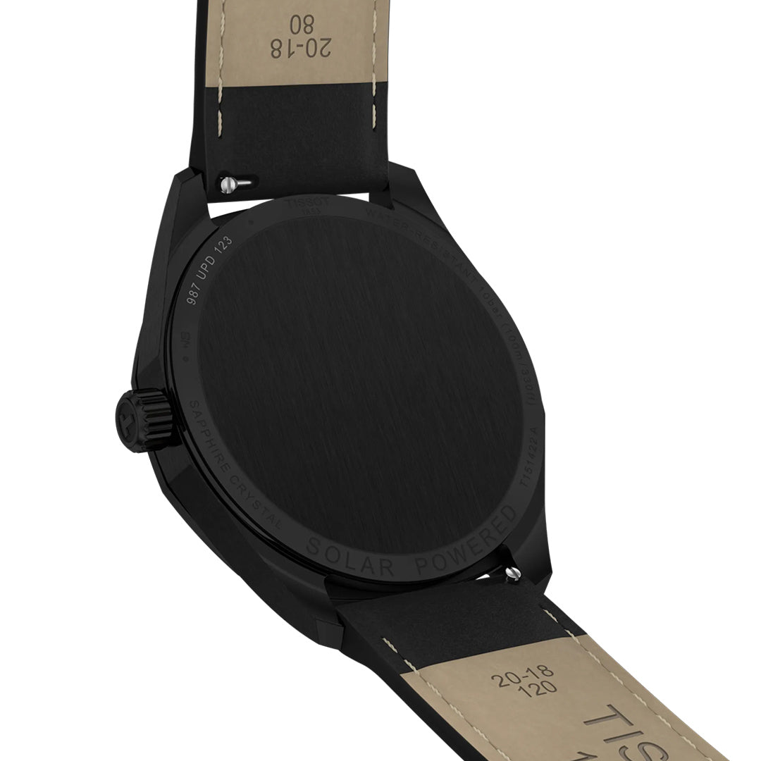 The TISSOT PRC 100 Solar Quartz Men's Watch combines bold design with cutting-edge solar technology. Featuring a sleek black leather strap and a striking black dial, this timepiece delivers precision and style without compromise. Its solar-powered quartz movement ensures reliable performance, making it the perfect companion for those who dare to stand out.