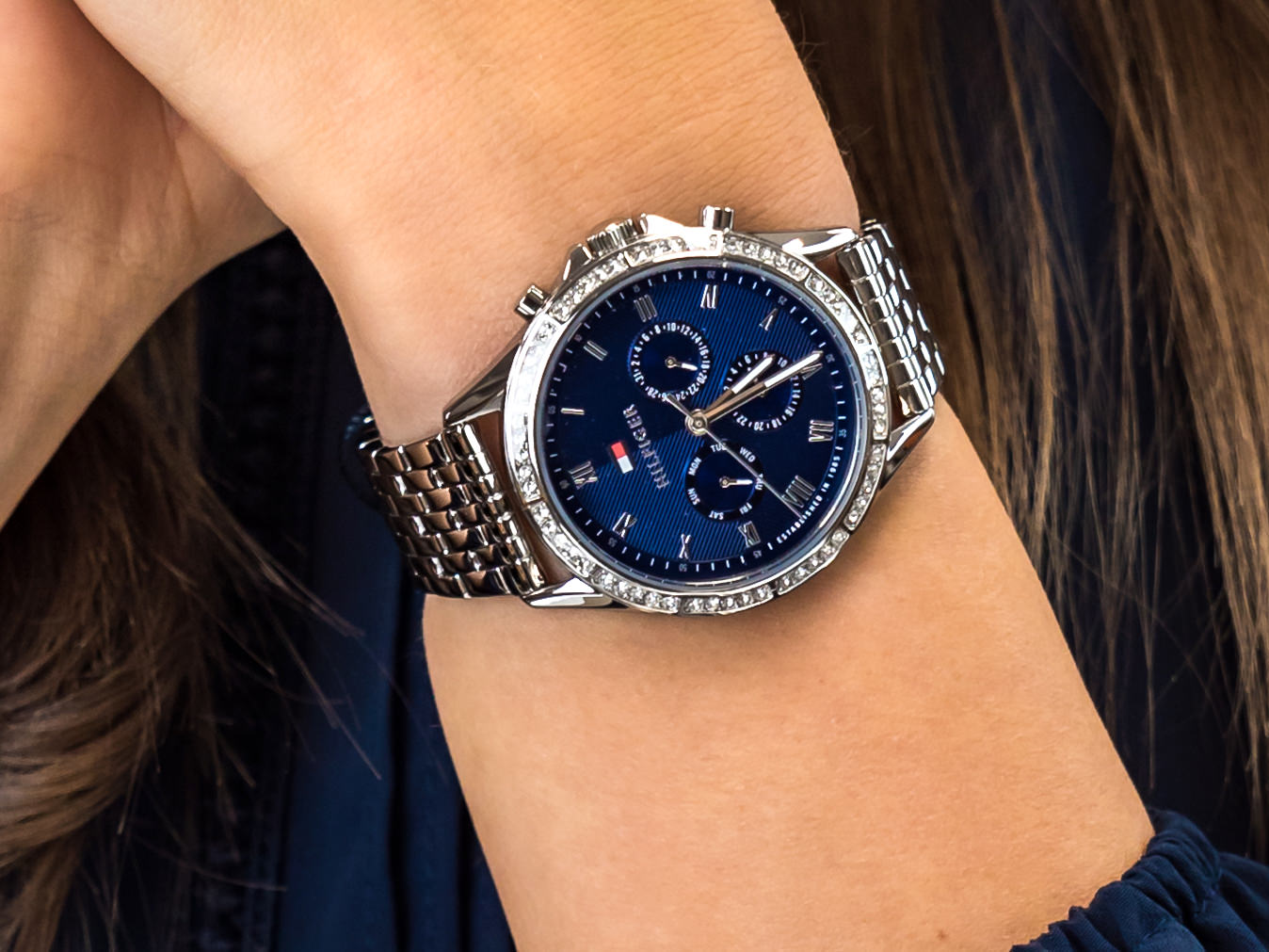 Embody elegance and class with the Tommy Hilfiger Ari Blue Dial Stainless Steel Ladies Watch. Its stunning blue dial pairs perfectly with the sleek stainless steel design. Keep track of time while making a statement.