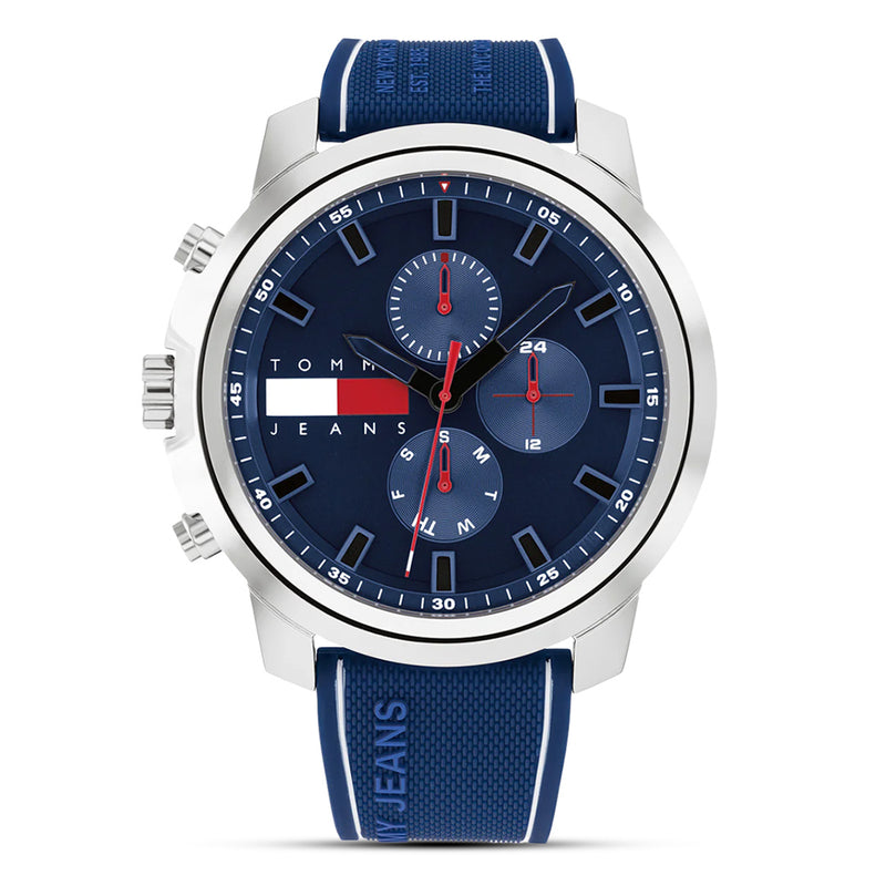 Experience timeless style and functionality with the Tommy Hilfiger Chronograph Men's Watch. This sophisticated timepiece features a sleek blue dial and a bold blue band, perfect for elevating any outfit. With its reliable chronograph function, you'll never miss a beat. Make a statement with this must-have watch!